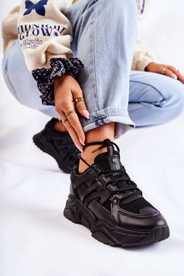 +2Damskie Sportowe Buty Sneakersy Czarne Daren