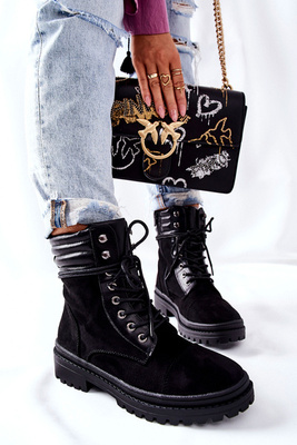 Botki Damskie Workery Zamszowe Czarne Deliopis