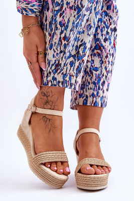 Sandały Damskie Na Koturnie Beżowe Kendall