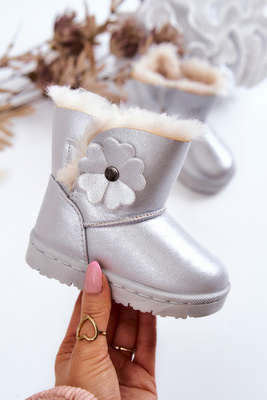Śniegowce Dziecięce Z Kwiatkiem Srebrne Bianca