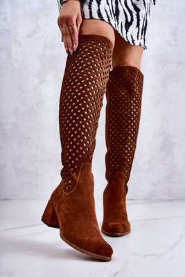 Zamszowe Kozaki Z Ażurowym Wzorem Brązowe Montana