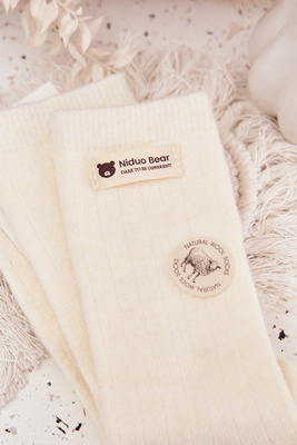 Dziecięce Świąteczne Skarpetki Z Misiem I Sercami Wełna Alpaka Beżowe
