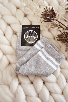 Damskie Bawełniane Skarpety Sportowe Z Paskami Szare
