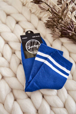 Damskie Bawełniane Skarpety Sportowe Z Paskami Niebieskie
