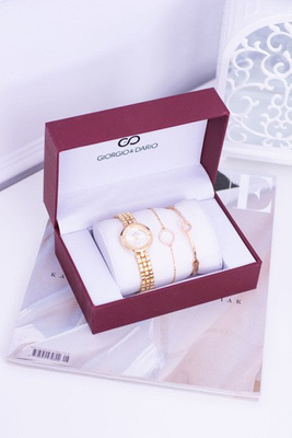 Giorgio Dario Zestaw Złoty Damski Zegarek Dwie Złote Bransolety