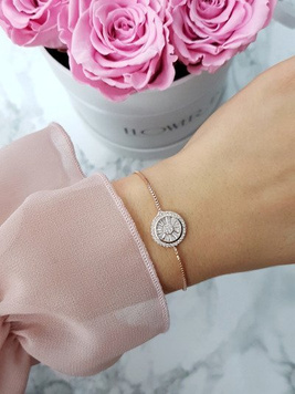 Damska Bransoleta Na Łańcuszku Drzewo Życia Różowe Złoto Mirra
