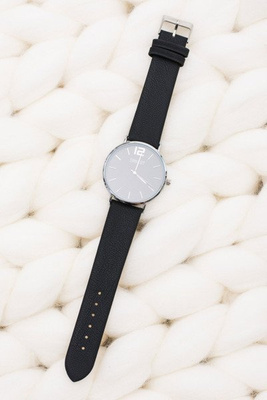 Stylowy Skórzany Czarny Damski Zegarek Ernest