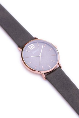 Klasyczny Skórzany Ciemnoszary Damski Zegarek Ernest