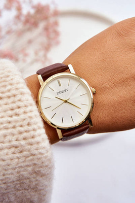 Damski Zegarek Ze Złotą Kopertą Ernest Brązowy Vega