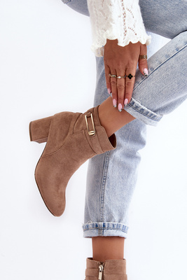 +1Damskie Botki Na Niskim Słupku Beżowe Verice