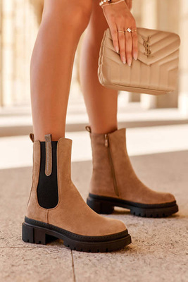 +1Zamszowe Botki Z Elastyczną Wstawką Beżowe Anyfer