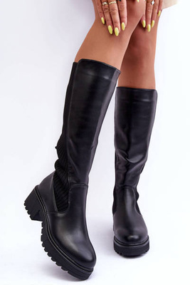 +1Wysokie Ocieplane Botki Sztyblety Wsuwane Czarne Milca