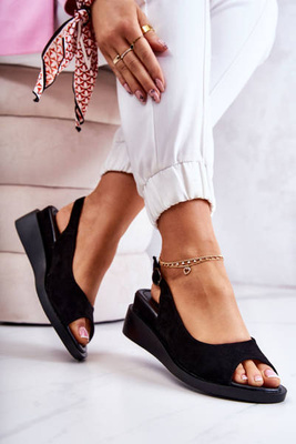 +1Zamszowe Sandały Na Obcasie Czarne Lorisa