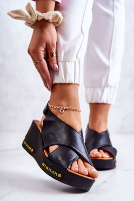 +1Damskie Sandały Na Koturnie Big Star JJ276046 Granatowe