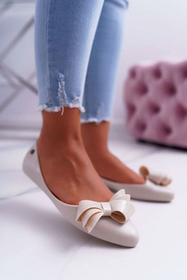 Lu Boo Beżowe Meliski Gumowe Balerinki Big Bow