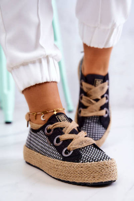 +1Damskie Plecione Tenisówki Slip On Big Star JJ274395 Czarne