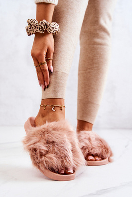 +2Klapki Z Futerkiem Gumowe Brudny Róż Allyson