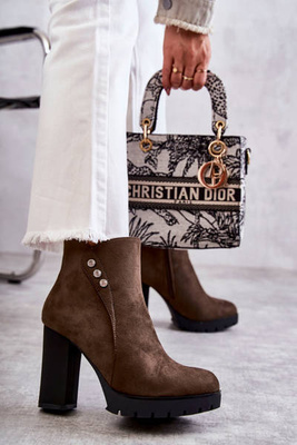 +2Zamszowe Botki Na Słupku Brązowe Vannes