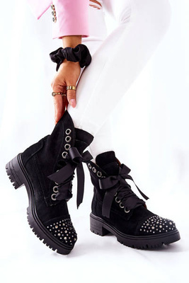 Botki Damskie Workery Zamszowe Czarne Deliopis