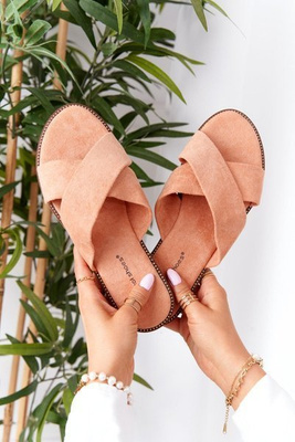 Damskie Welurowe Klapki Brzoskwiniowe Edesa