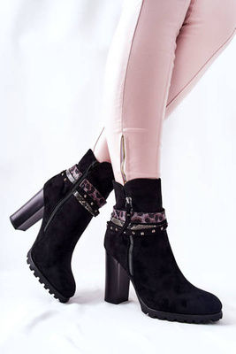 Zamszowe Botki Na Obcasie Czarne Elisea