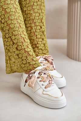 +1Sneakersy Damskie Na Platformie Z Ozdobnym Sznurowaniem Białe Mistra