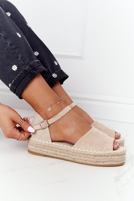 +6Zamszowe Sandały Na Koturnie Maciejka 04565-04 Beżowo-Złote