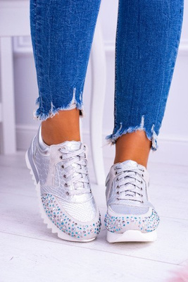 +3Lu Boo Damskie Srebrne Sportowe Buty Madoni