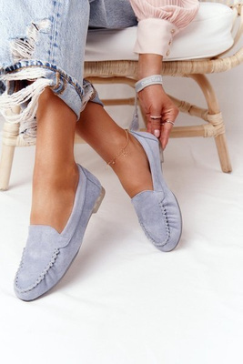 +4Zamszowe Baleriny Sergio Leone BL622 Niebieskie