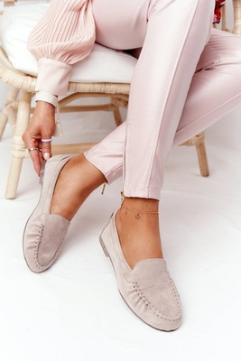 +3Damskie Mokasyny Sergio Leone MK700 Zamszowe Beżowe