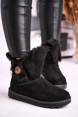 +1Damskie Śniegowce Zamszowe z Futerkiem Czarne Button