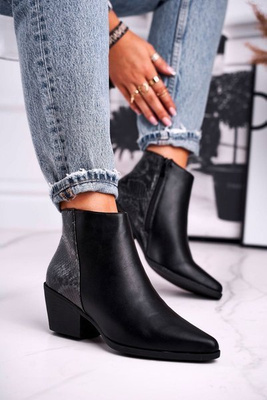 Botki Damskie Z Wycięciami Croco Czarne Aria