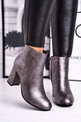 +1Damskie Botki Na Słupku Szare Gun