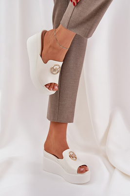 Klapki Na Platformie I Koturnie Z Ozdobą Białe Nanessia