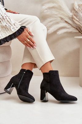 Zazoo 60478 Zamszowe Botki Na Obcasie Ocieplane Zapinane Na Zamek Czarne
