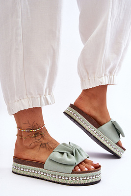 +3Damskie Klapki Zamszowe Z Kokardą Zielone Lauria