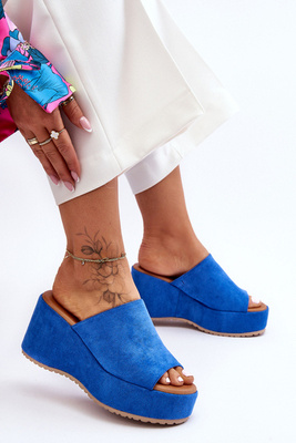 +5Damskie Klapki Na Masywnej Platformie Niebieskie Martina
