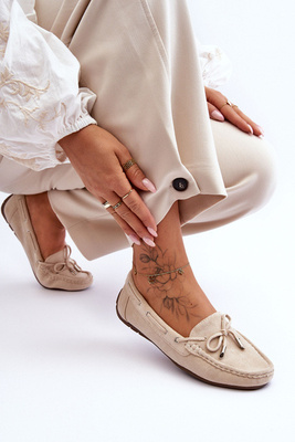 +3Damskie Klasyczne Zamszowe Mokasyny Beżowe Corinell