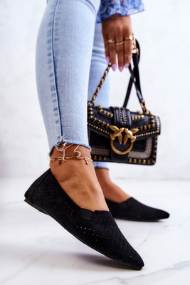 Ażurowe Damskie Baleriny Wsuwane Czarne Rosario