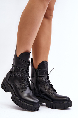 +1Skórzane Botki Workery Damskie Czarne Charmea
