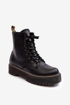Damskie Sznurowane Botki Trapery Czarne Maddis