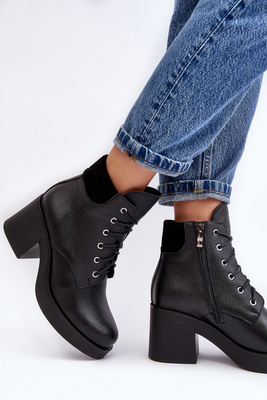 +2Skórzane Botki Damskie Na Słupku Czarne Lemar Leocera