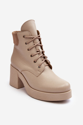 +2Skórzane Botki Damskie Na Słupku Beżowe Lemar Leocera