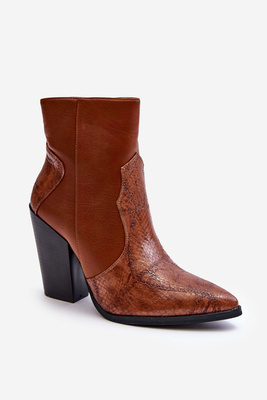 +10Damskie Skórzane Botki Na Słupku Maciejka 04492-14 Ciemnobeżowe