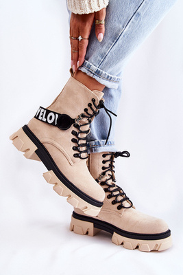 Ocieplane Zamszowe Botki Workery Wiązane Beżowe Pierro