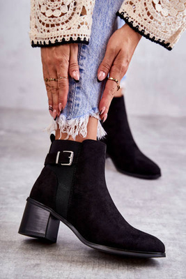 +3Zamszowe Ocieplane Botki Z Paskiem Czarne Aurelio