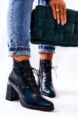 Skórzane Botki Ocieplane Krokodyl Zielone Tanya