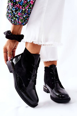 +2Damskie Skórzane Botki Trzewiki Nicole Czarne 2581/001