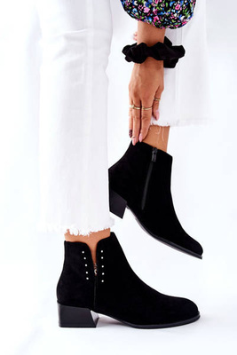 Damskie Skórzane Welurowe Botki Nicole Czarne 2680/028