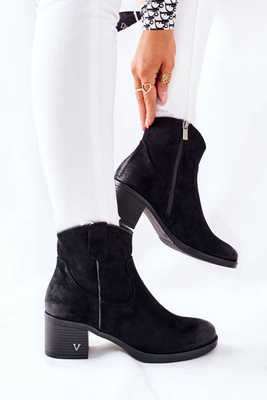 +1Botki Damskie Zamszowe Czarne Nicole 2674